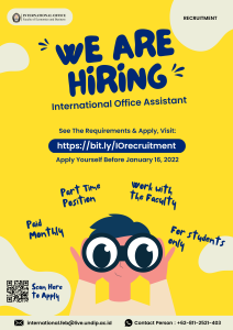 International Office is Hiring for Assistant [OPEN RECRUITMENT] International Office is now hiring an Assistant who will be paid monthly! Those who are interested in this job may scan the QR