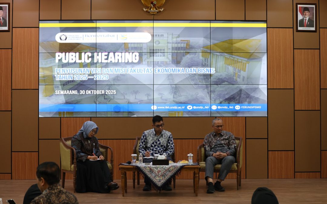Semarang – The Faculty of Economics and Business, Diponegoro University (FEB Undip), held a Public Hearing for the formulation of its Vision and Mission, as well as the discussion of the Draft Strategic Plan 2025–2029, on Thursday, October 30, 2025, at the Pertamina Hall, FEB Undip.