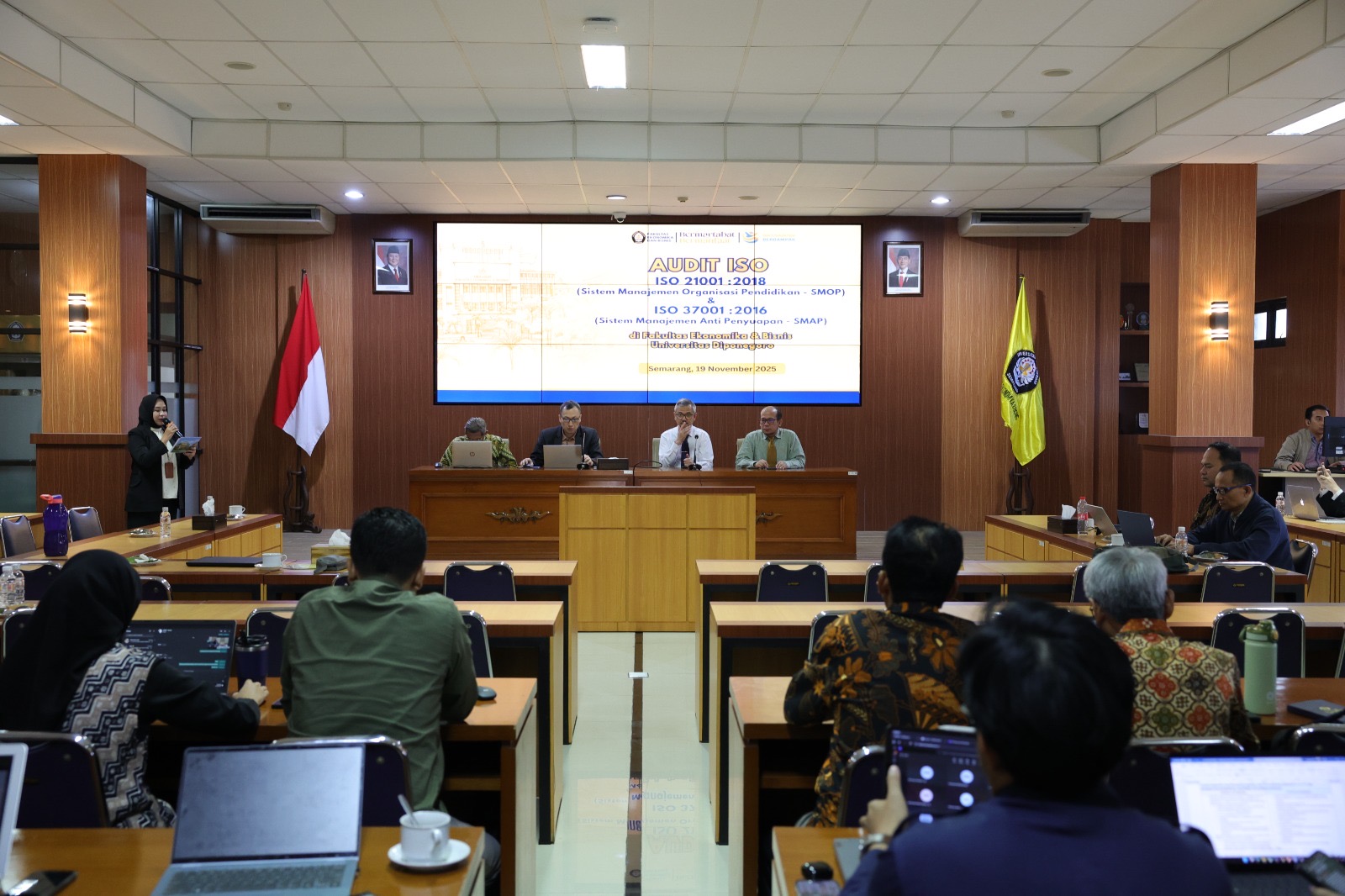 The Faculty of Economics and Business, Diponegoro University (FEB Undip), has officially earned the ISO 37001:2016 Anti-Bribery Management System certification and the ISO 21001:2018 Management System for Educational Organizations certification following the successful completion of its external audit. This achievement marks a significant milestone in FEB Undip’s ongoing commitment to strengthening governance, enhancing institutional integrity, and aligning its management practices with internationally recognized standards.